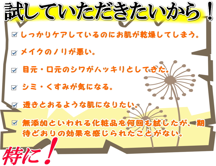お肌のお悩みを抱える方にどうしても試していただきたいから…。