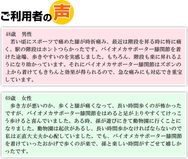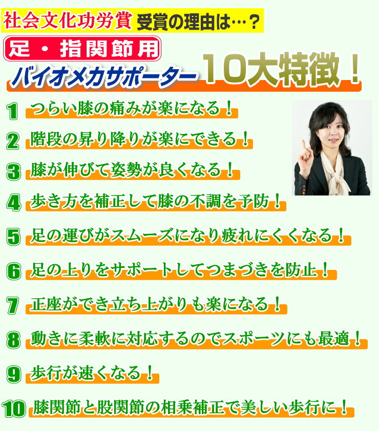 ◎バイオメカサポーター膝関節を装着することで膝を安定させることにより膝の症状を緩和し、滑らかな動きをもたらします。